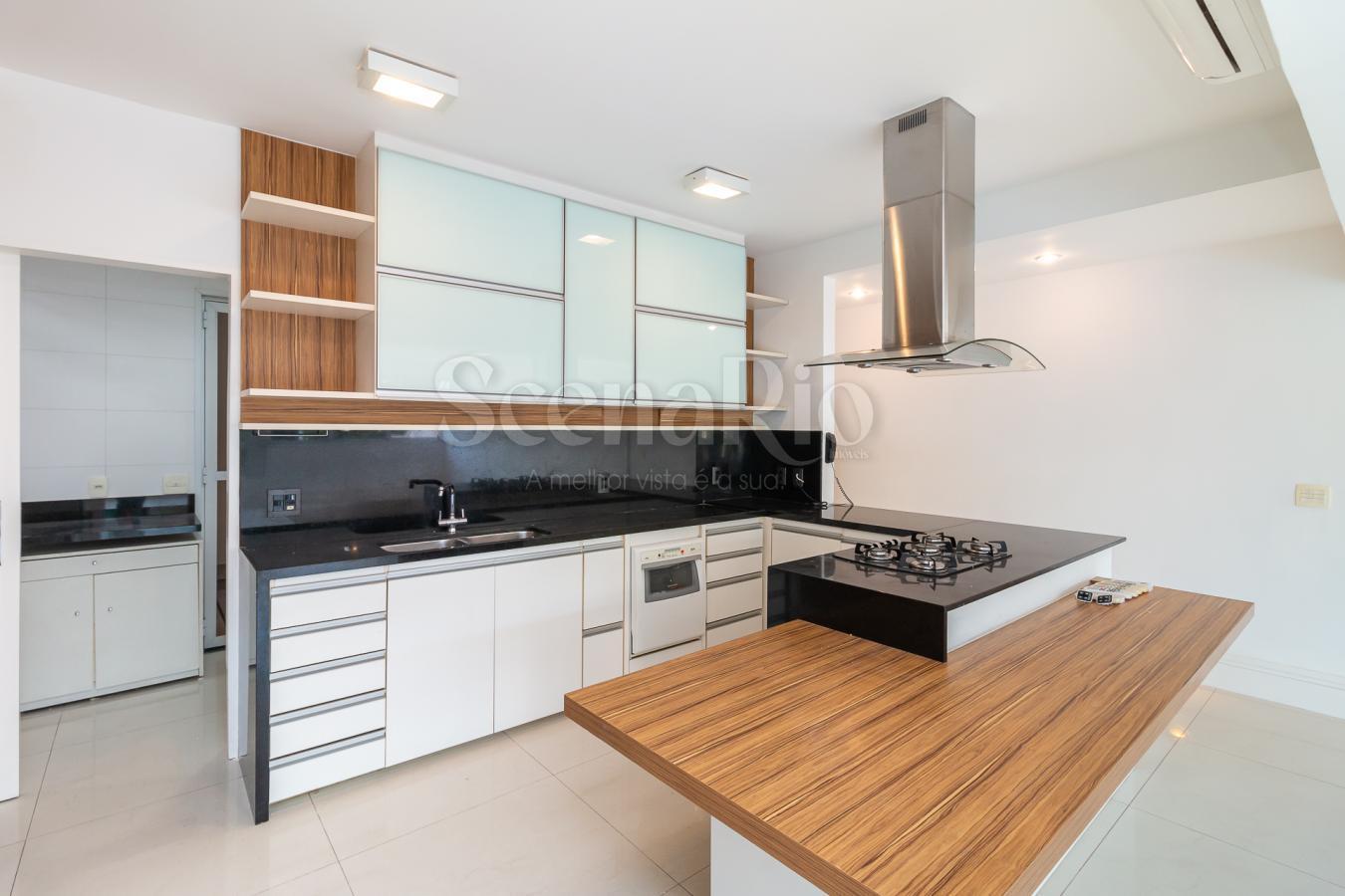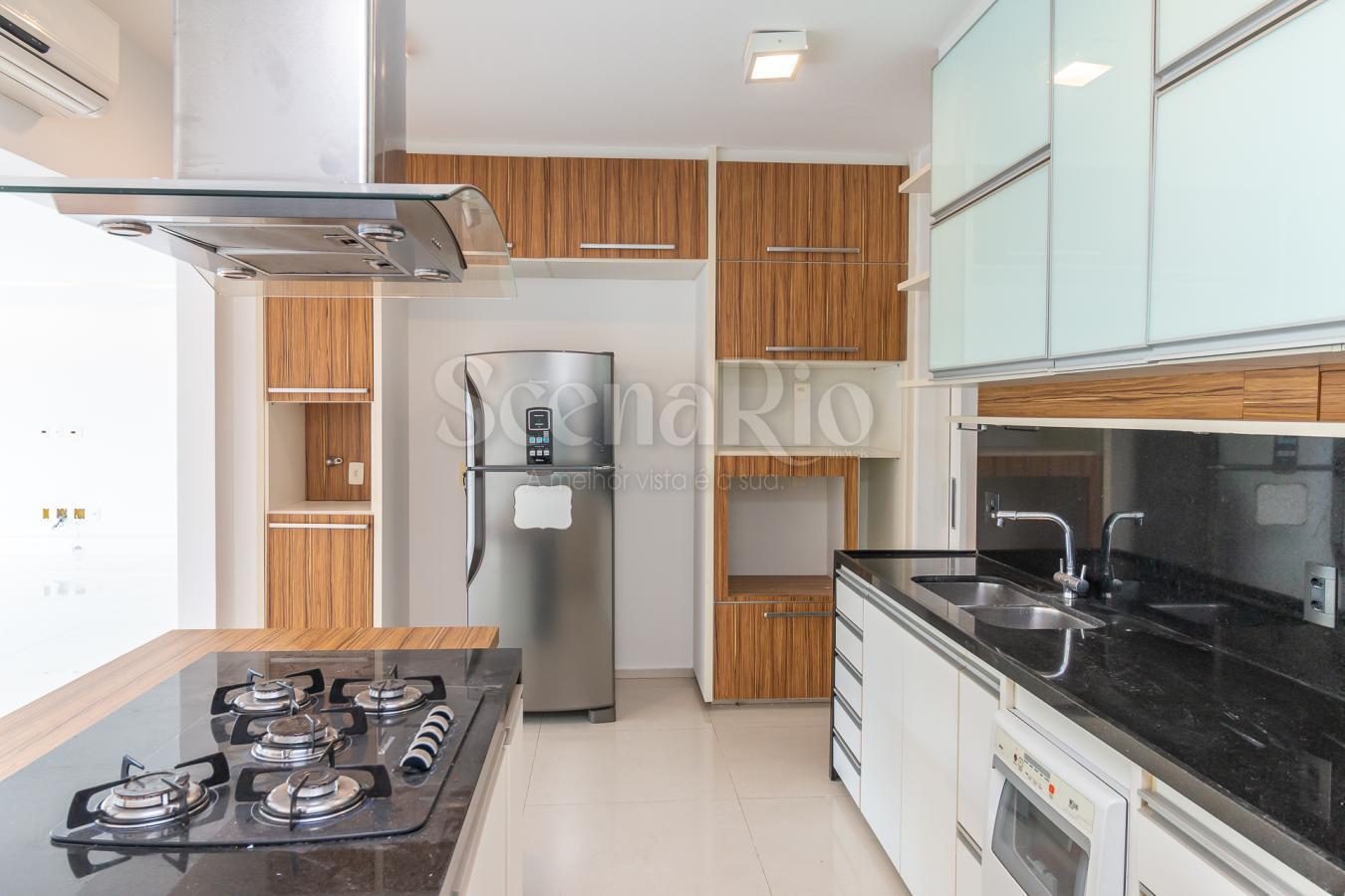No interior, o living integrado em porcelanato cria ambientes amplos para receber amigos e familiares, enquanto a cozinha com armários planejados e despensa facilita a organização no dia a dia. São cinco banheiros bem distribuídos, incluindo lavabo e dependências completas de empregada, além de área de serviço equipada com máquina de lavar. Ar condicionado em todos os cômodos, elevador moderno, jardim interno de inverno, salão de festas e playground elevam ainda mais o padrão de conforto. Cada detalhe — do fogão à geladeira de alta performance — reforça o estilo de vida prático que Ipanema oferece.